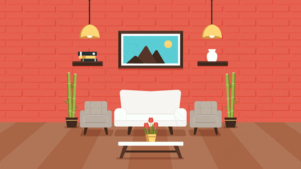 图片素材-扁平沙发客厅家居室内生活场景-13